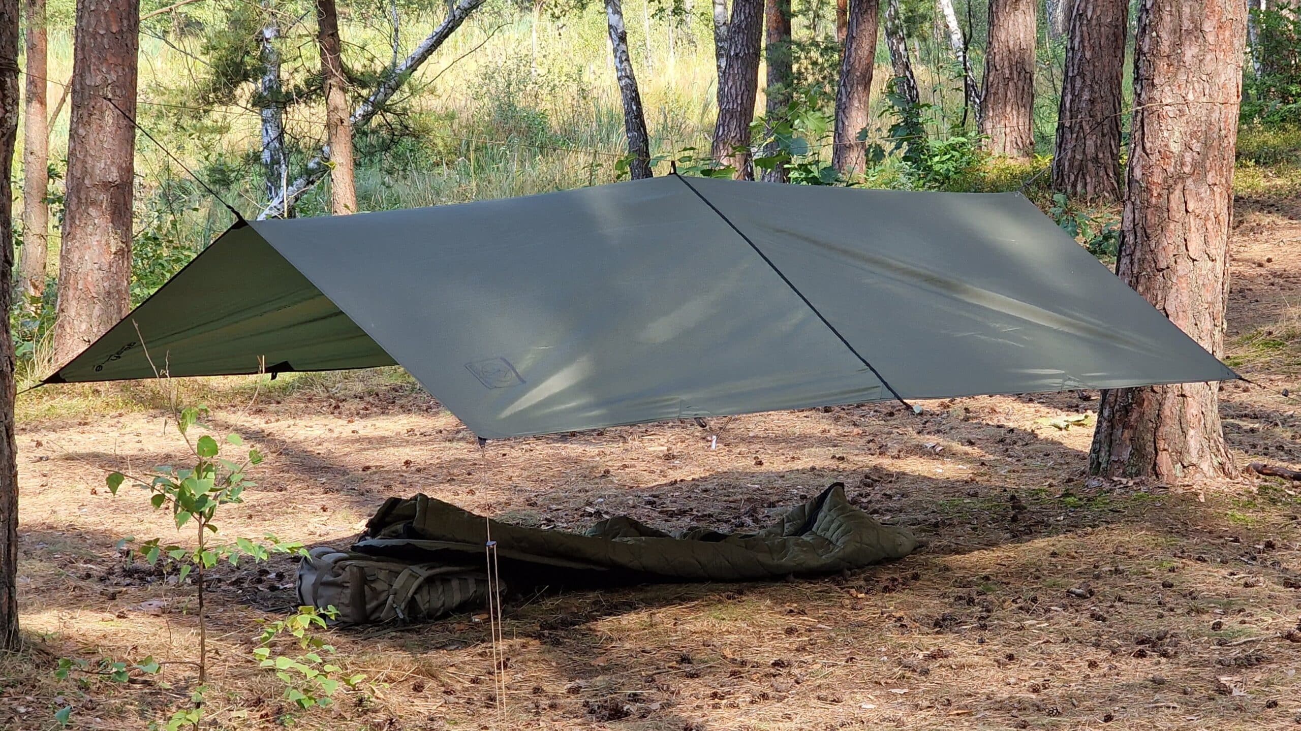 EASY Tarp 2×3 Green to wodoodporna plandeka turystyczna o wymiarach 2 × 2,9 m, idealna na biwak, bushcraft i wyprawy outdoorowe. Wykonana z lekkiego, trwałego poliestru 190T (3000 mm H₂O), oferuje pełne wyposażenie: śledzie, odciągi, cięciwę i elastyczne pętle PRUSIK-PRO. Gotowy zestaw zapewnia szybki montaż i niezawodną ochronę przed deszczem i wiatrem w każdych warunkach.